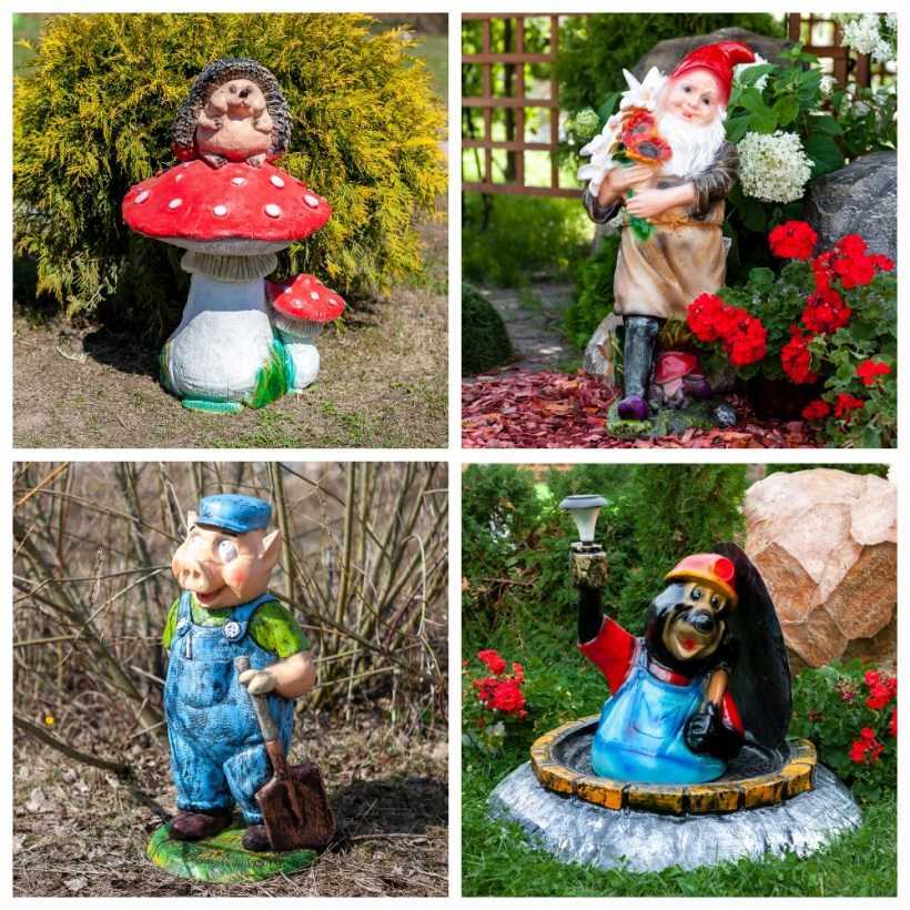 Помимо гномов, вы можете подобрать и другие варианты потешных фигурок для сада: проявите свою фантазию или пройдитесь по специализированным магазинам, чтобы отыскать что-нибудь оригинальное.