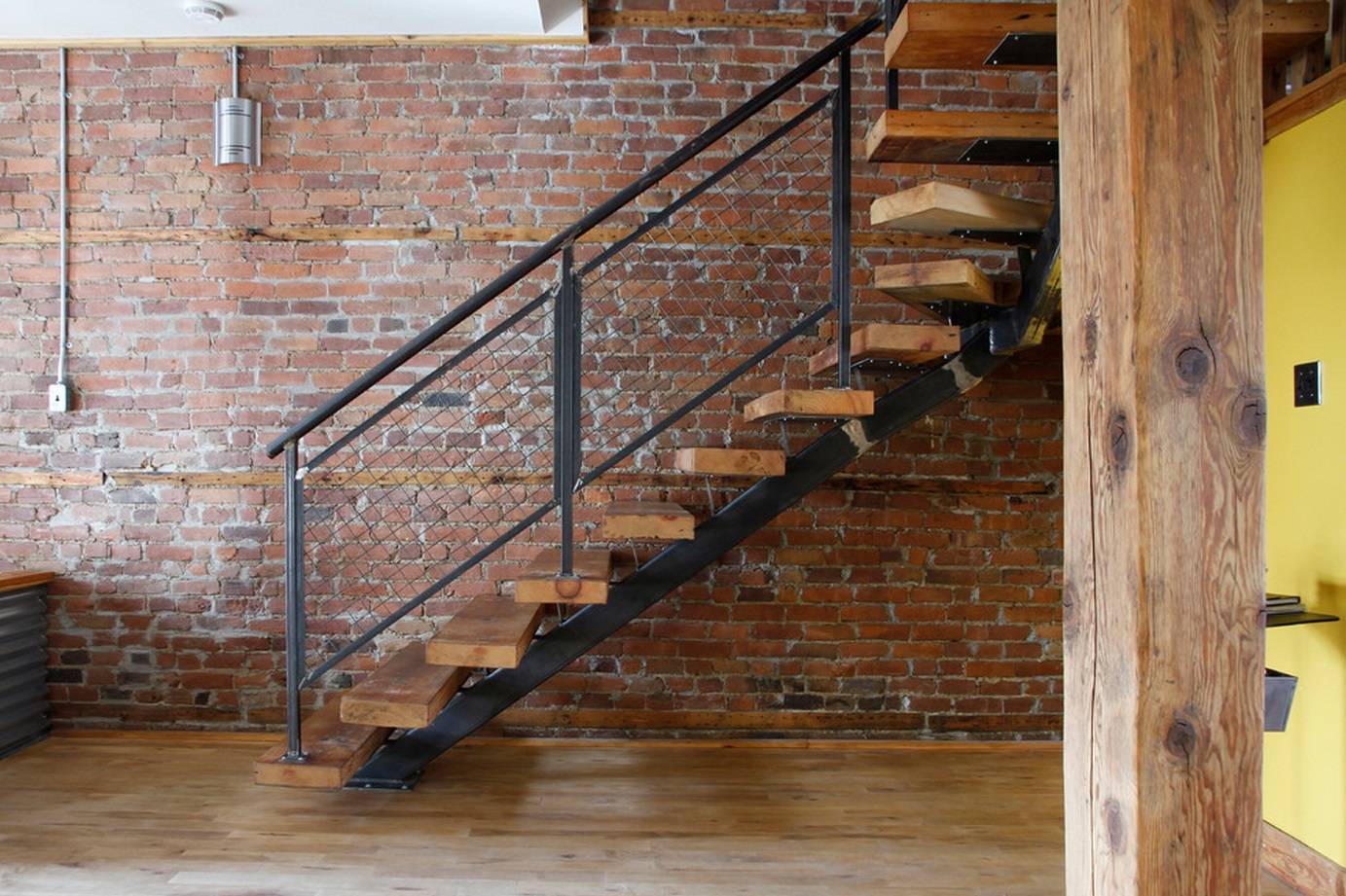 Для изготовления поручней используется металл или дерево. В первом случае это может быть нержавеющая стать, латунь или алюминий. Латунь стоит дороже, а вот алюминий нельзя назвать прочным металлом. Решетчатые элементы более удачно впишутся в интерьер стиля лофт, особенно если лестница установлена вдоль стены из кирпичей.