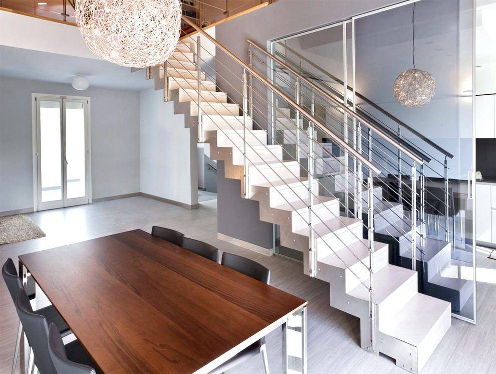 Оформить лестницу можно как с ограждениями, так и без них. Здесь выбор на вкус хозяина дома. Однако стоит помнить, что лестничное ограждение призвано обеспечивать безопасное передвижение
