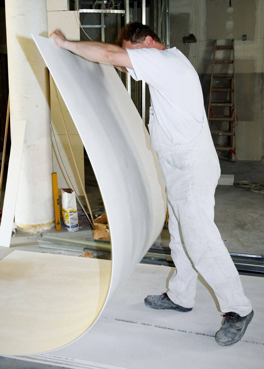 Основной характеристикой гипса является его пористость. При попадании влаги на гипсокартон, он становится мягким. При полном высыхании лист гипсокартона сохраняет созданную криволинейную форму на долгие годы.