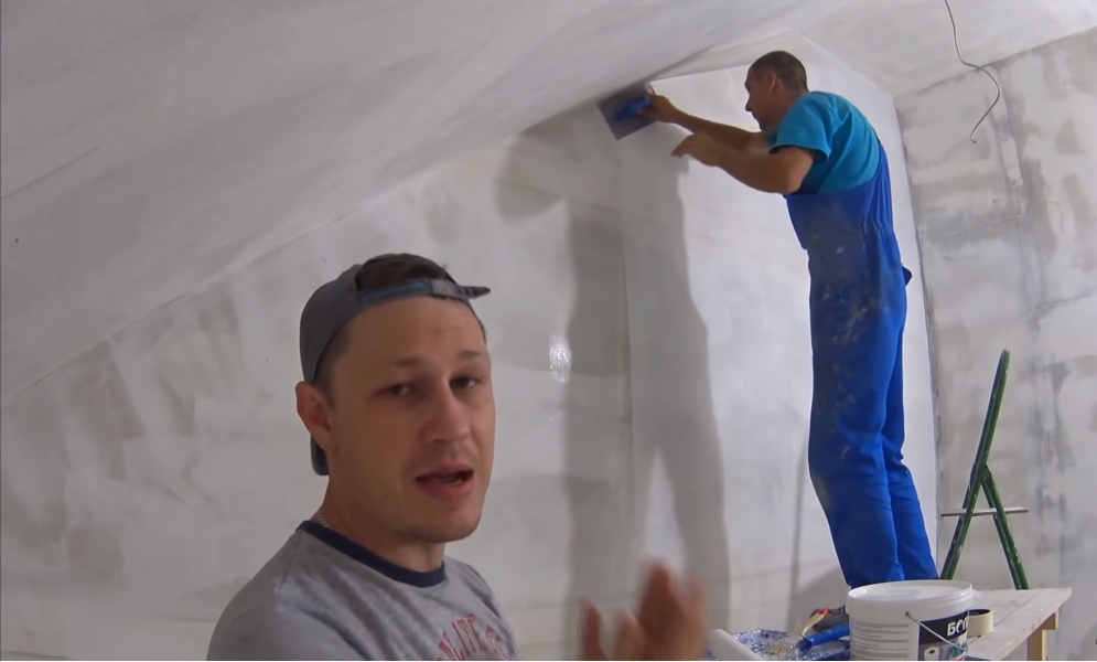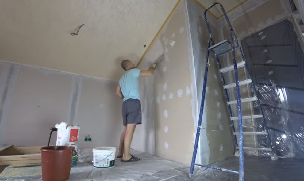 - Всё опять грунтуется, а потом наносится финишная шпаклевка.