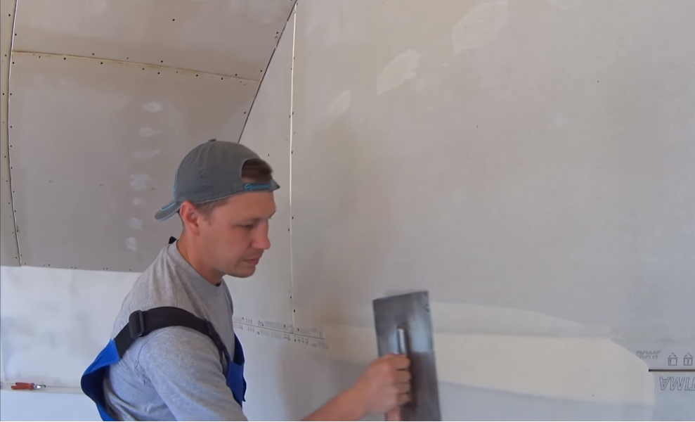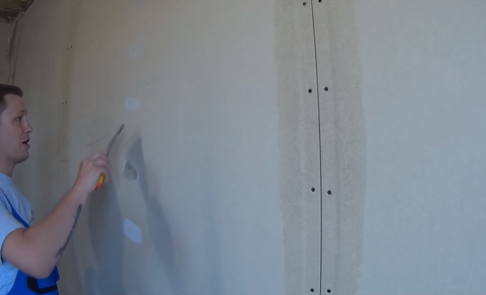 Перед финишной штукатуркой шляпки саморезов для гипсокартона нужно замазать