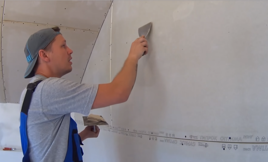 Работы начинаются с тщательного грунтования стен. Заделываются стыки и места крепления саморезов. Первые дополнительно армируются сеткой. Наносится финишный слой. Основание тщательно выравнивается.