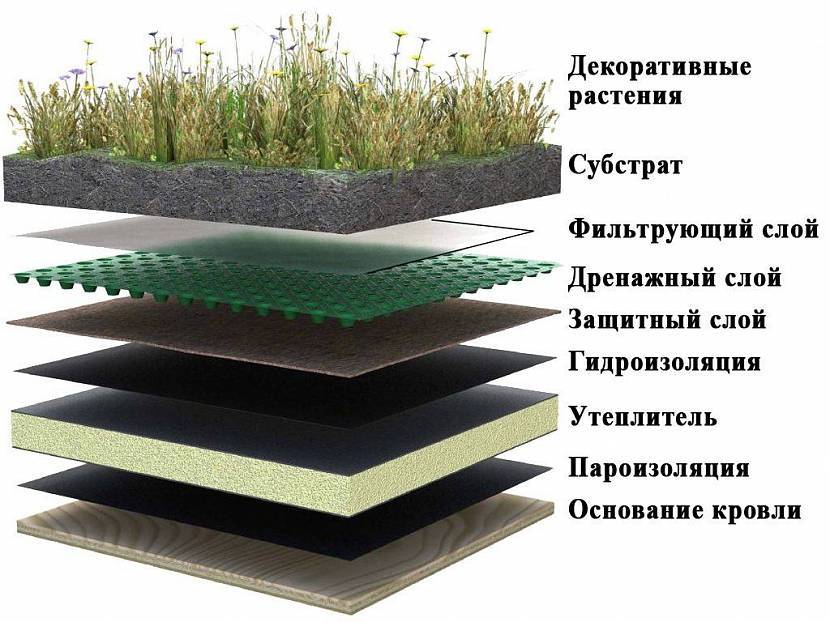 Один из вариантов схемы эксплуатируемой плоской кровли с мавританским газоном