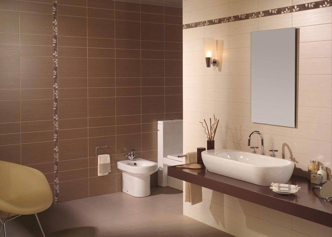 Одна коллекция плитки для ванной может иметь несколько вариантов расцветки. На практике, в одном помещении будет достаточно правильно совместить по одному светлому и темному фону, взять один вид декоров и напольной плитки.