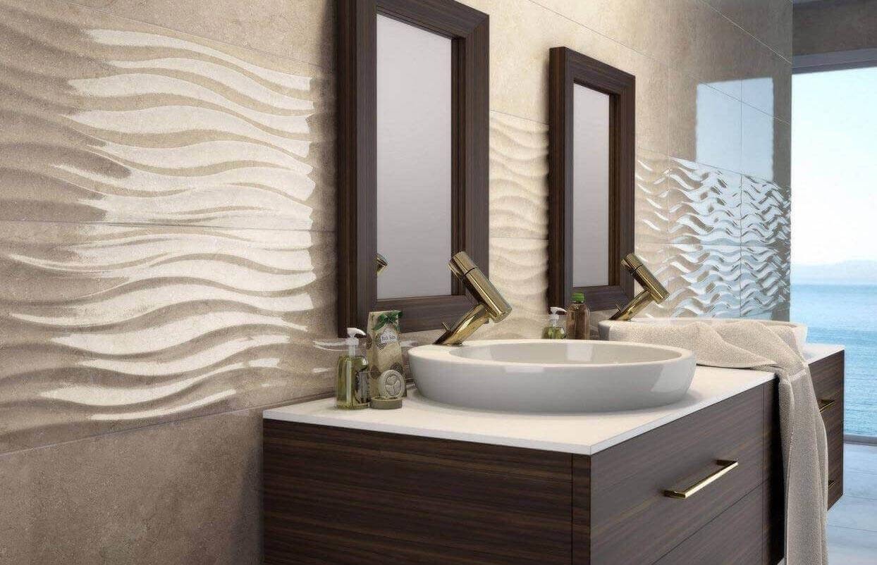 При решении вопроса, какую плитку лучше выбрать для ванной, по фото можно определить фактуру.