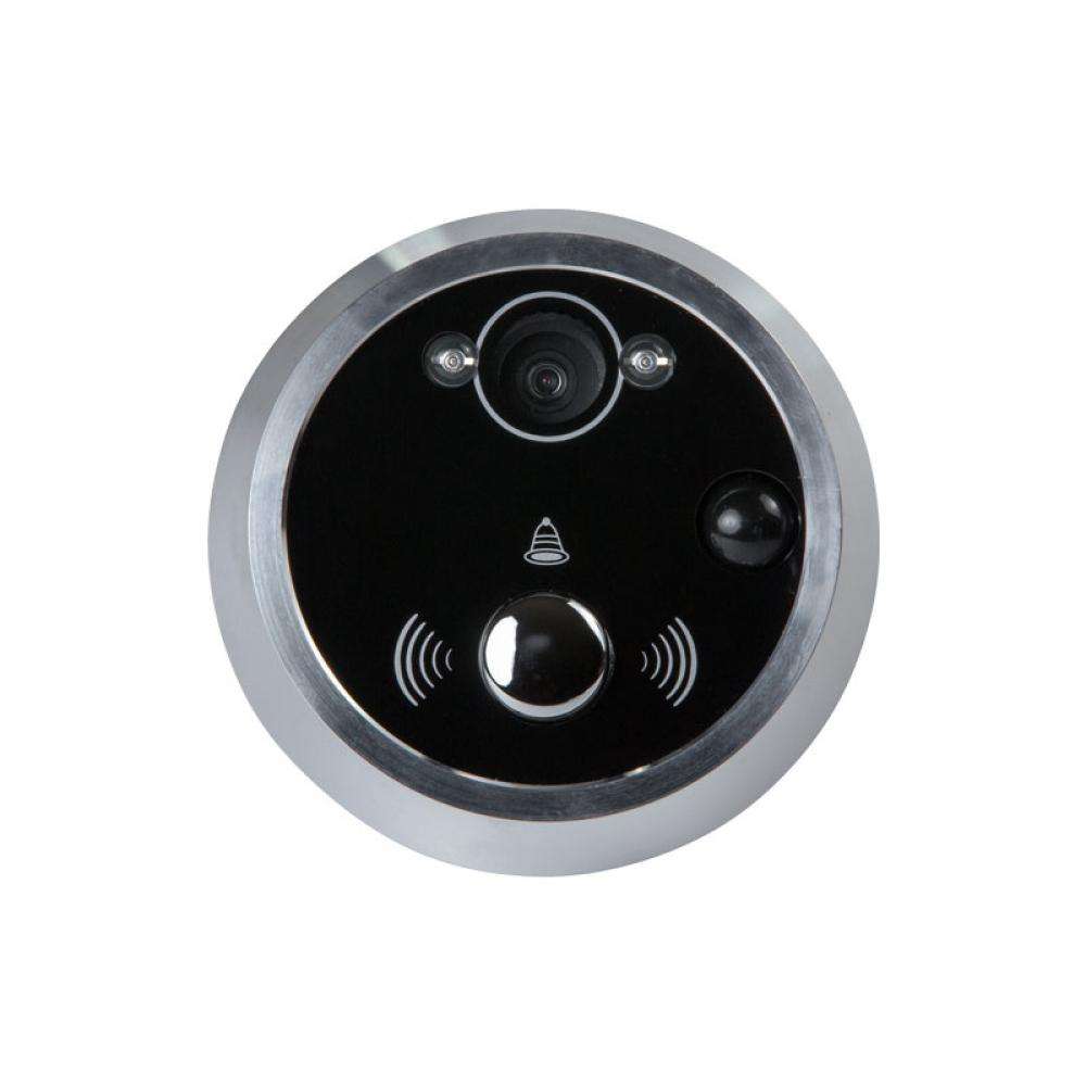 Видеокамера, установленная вместо дверного глазка дает четкое изображение происходящего за дверью даже при отсутствии освещения (чувствительность 0,01 Люкс) и за счет инфракрасной подсветки. Она способна осуществлять не только съемку в высоком разрешении, но и аудиозапись с возможностью последующего воспроизведения.