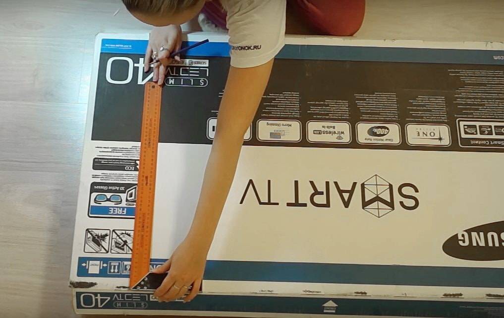 Практически в центральной части коробки делаем разметку для будущего камина.