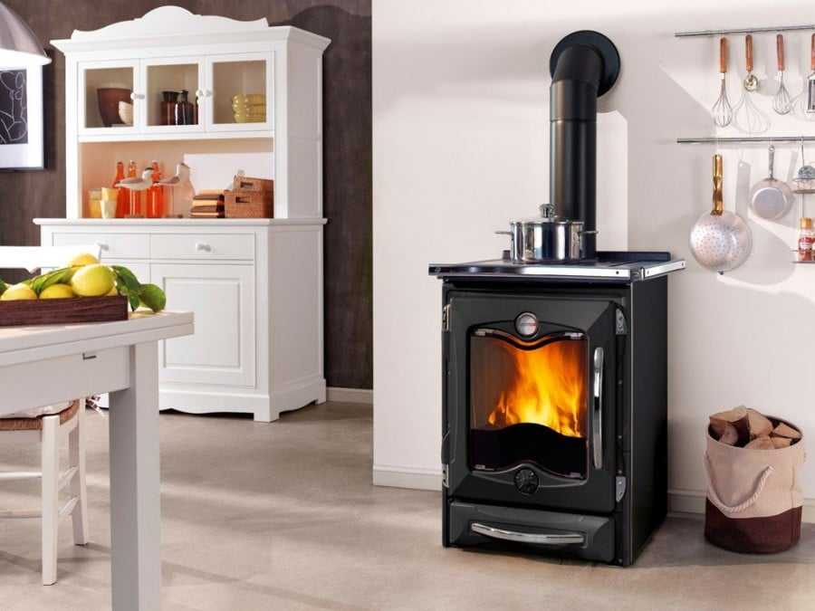 Печь-камин с плитой и духовкой для кухни-гостиной