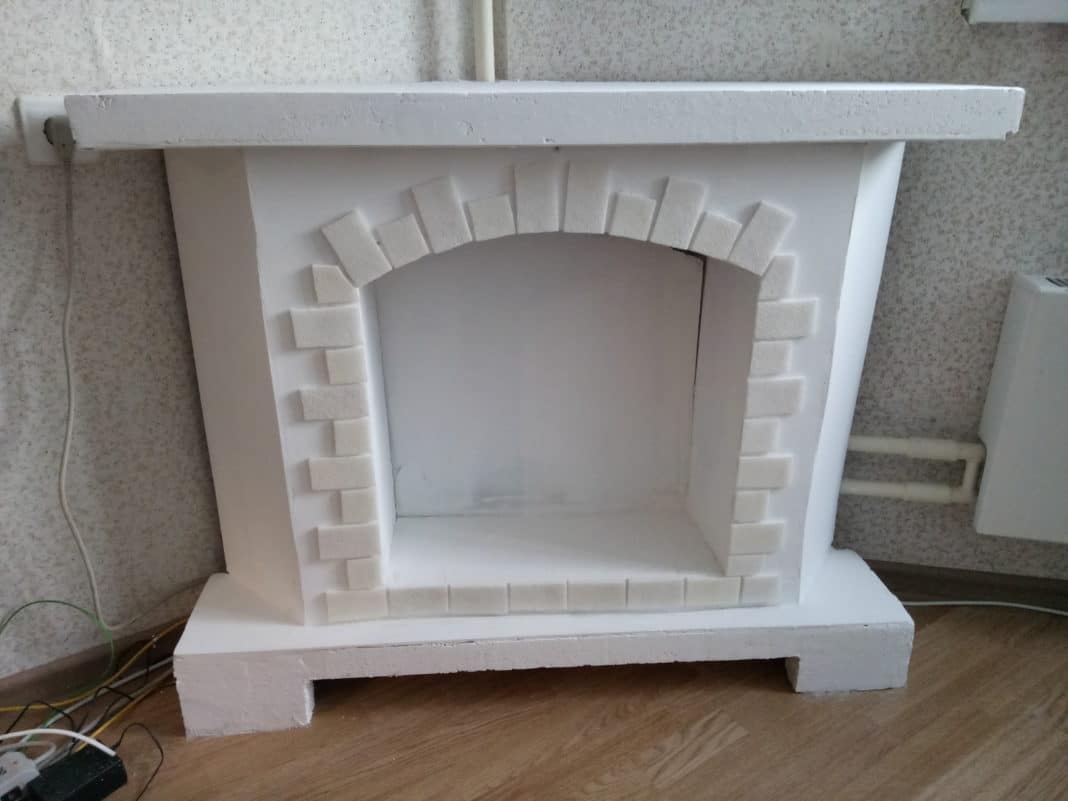 - малый вес пенопласта позволит сконструировать камин и установить его на выбранное место одному человеку, не прибегая к посторонней помощи;