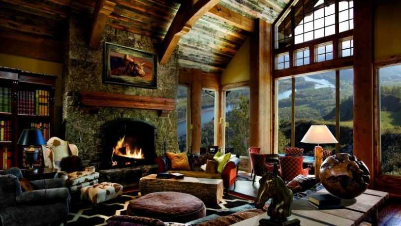 Интерьер с телевизором и камином нужно продумывать заранее. С деревенским стилем ТВ-прибор над отопительным прибором также трудно представить. Этот стиль имеет свои особенности.