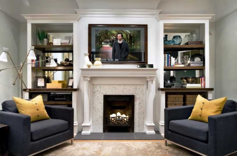 Перед установкой телевизора над камином в интерьере гостиной можно глянуть фото, чтобы найти хорошие варианты. Это позволит сразу подобрать подходящие друг к другу предметы.