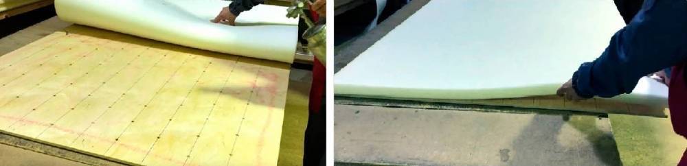 - Основа с поролоном раскладывается горизонтально таким образом, чтобы мастер мог иметь доступ к её оборотной стороне в любом месте.