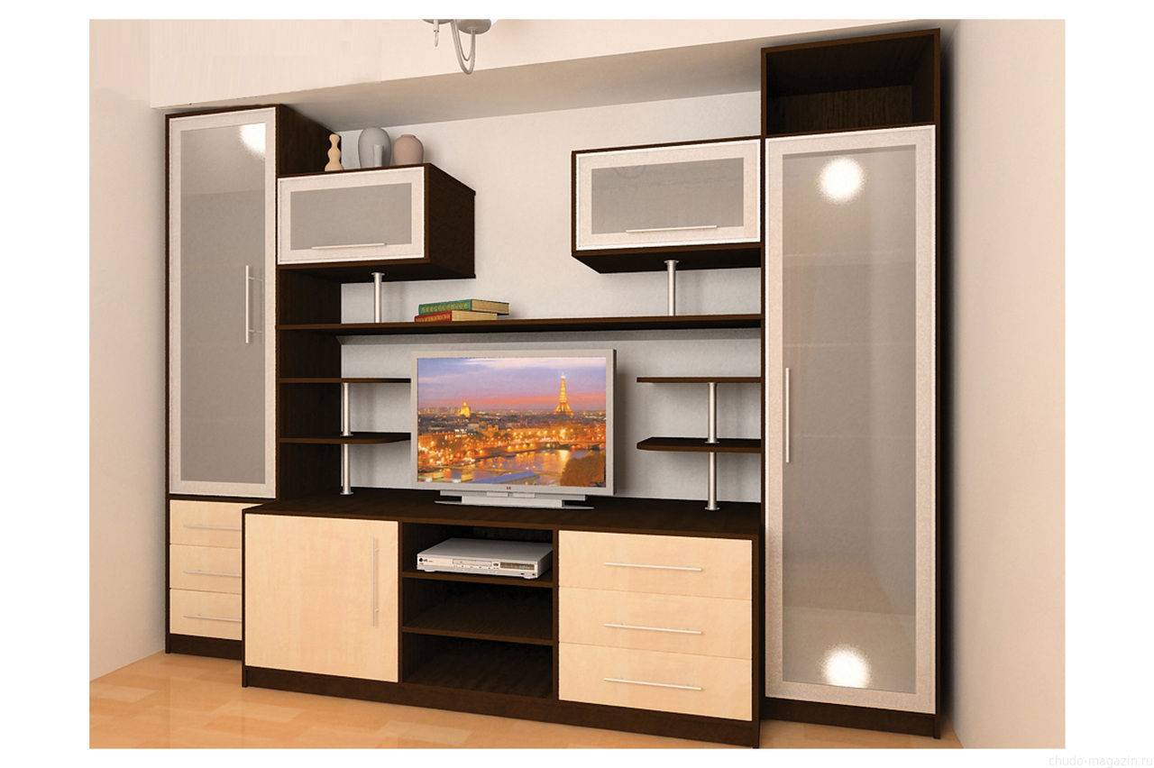 Министенка в гостиную в современном стиле подойдет, если у Вас мало места в комнате