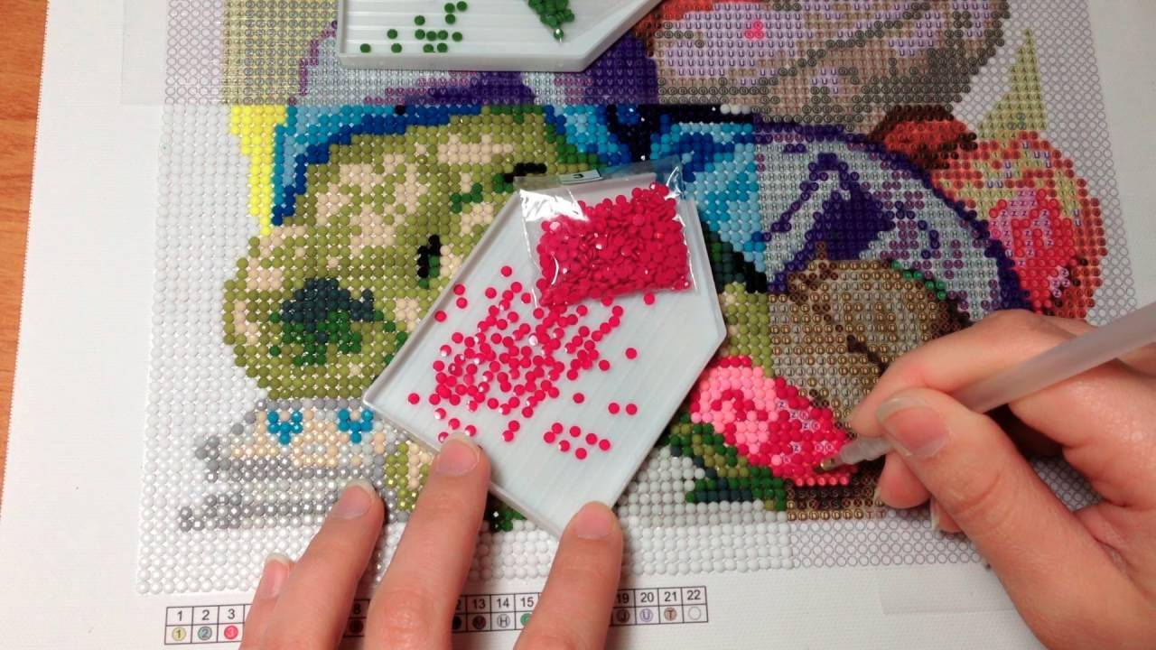 Несмотря на то, что алмазную мозаику называют еще и вышивкой, к вышиванию она отношения не имеет. Просто результат получается очень похожим на тот, что и от закрепления бисера на полотне с помощью иголки с ниткой. Особенно, если смотреть издалека.