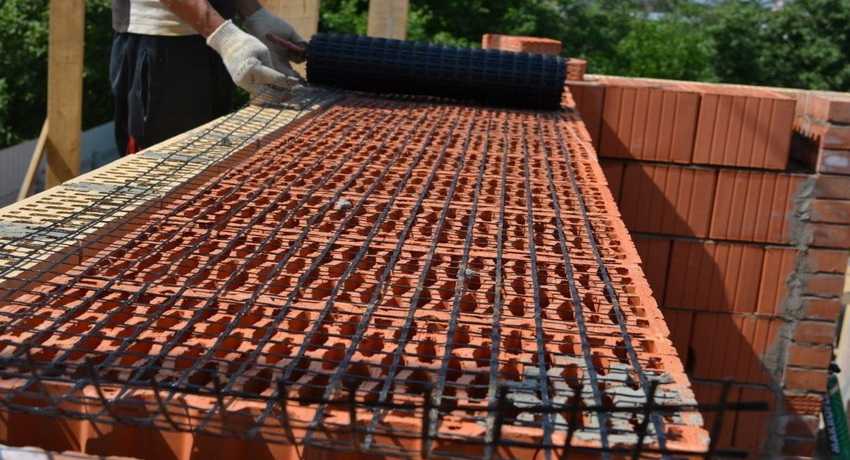 Ряды армирования размещаются над и под рядом кладки в плоскости перекрытия, если в конструкции стены не предусмотрены обвязочные монолитные пояса, например, как в деревянных сборных перекрытиях.