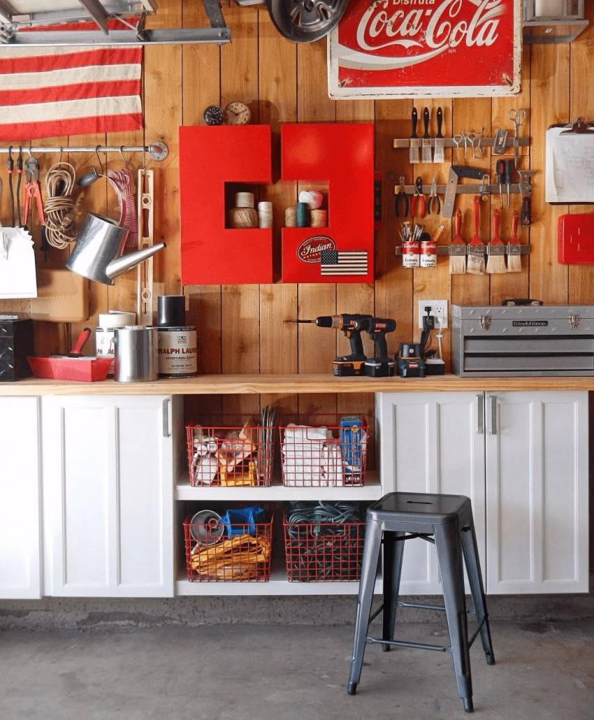 - кладовка-мастерская оборудуется рабочим столом, крючками для подвешивания инструментов, полками и ящиками. Тут экономное и яркое освещение выходит на первый план;