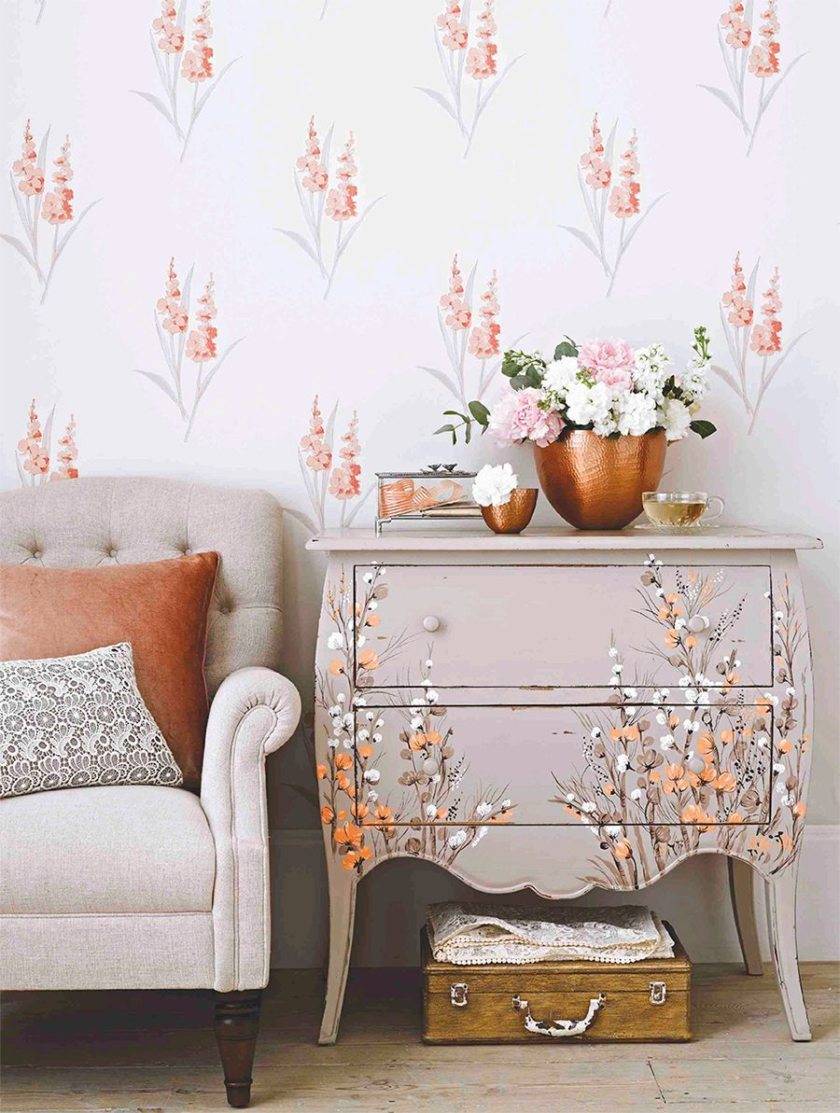 Спальня в викторианском стиле. Цветочно-растительная тематика в оформлении обоев – традиционное решение