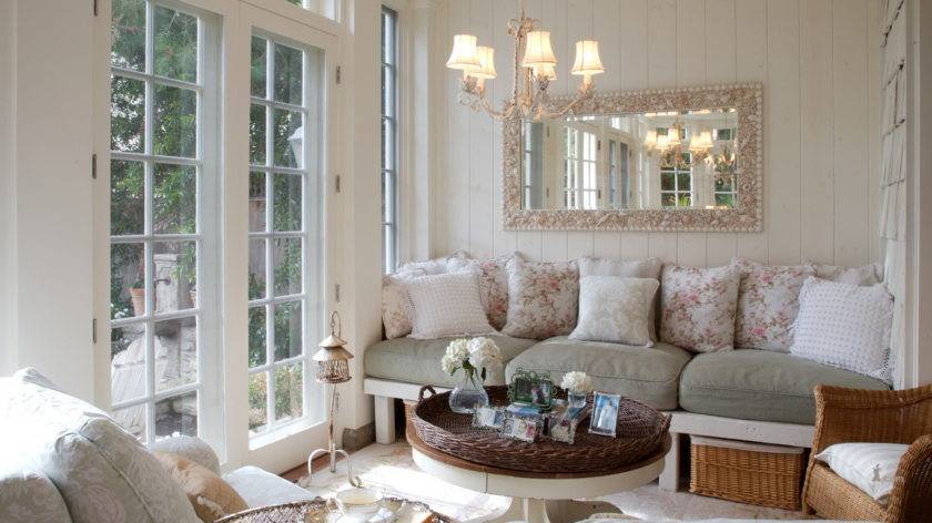 - зеленые, коричневые элементы гармонируют с пастельными.