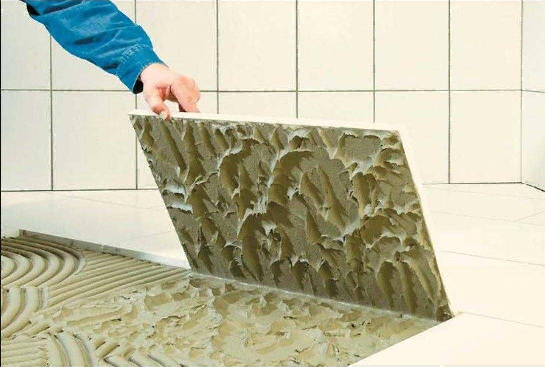 Фиксация крупноформатной плитки на клей Источник alonson.com