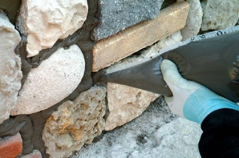 - Заполнение всех швов и пустот между камнями. Делается с обеих сторон. Раствор будет виден, но кладка получится прочной и сохранится гораздо дольше.