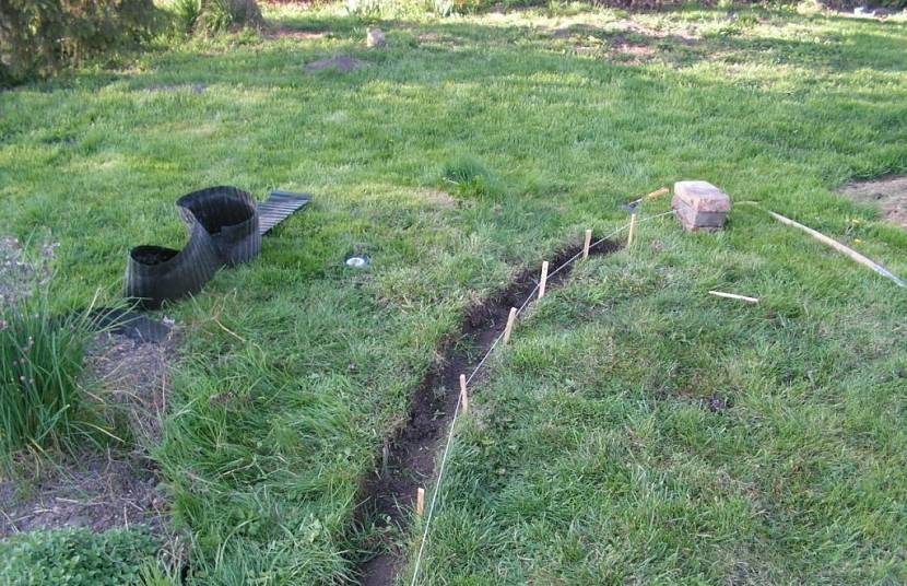 - По намеченной траектории выкапывается траншея, глубиной 20-30 см.