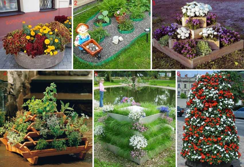 Помимо перечисленных материалов цветник можно оформить при помощи старой мебели, например, ящичков