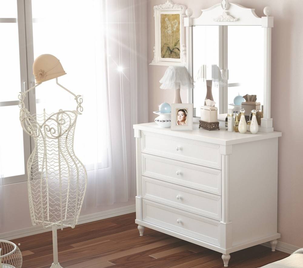 модели с зеркалом – такие изделия часто применяются в качестве туалетного столика;
