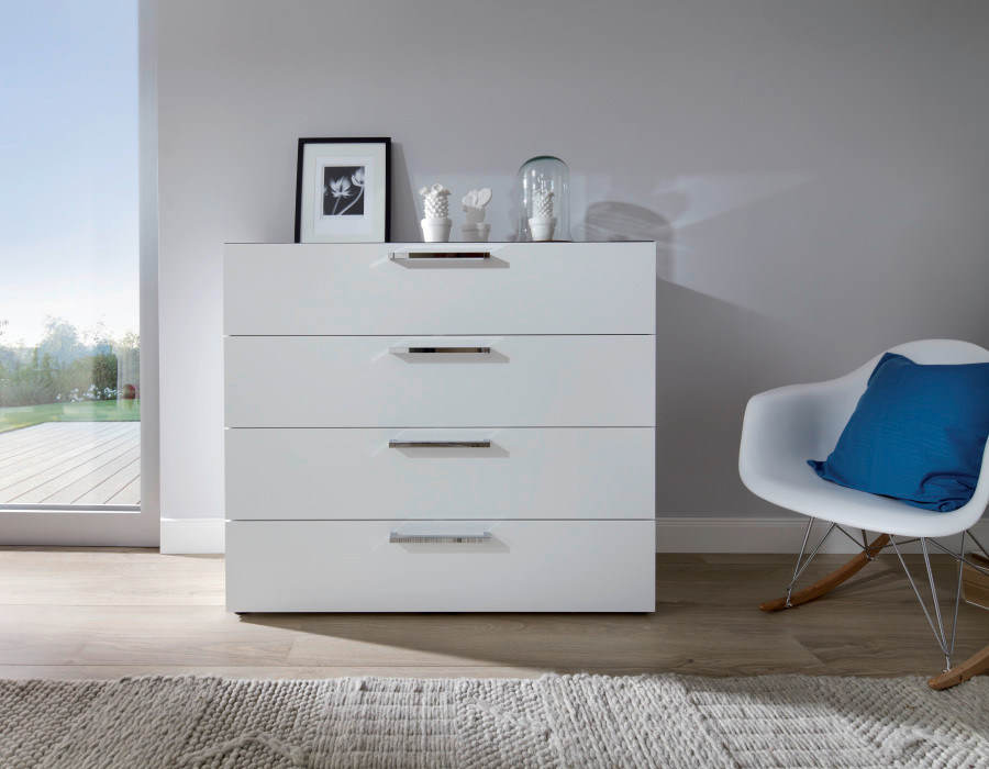 Вам не нужно устанавливать комод того же цвета, что и другая мебель в комнате, но, например, можно установить цветовой акцент, перенеся мотив из гардероба, кровати или книжного шкафа на переднюю часть или ножки комода.