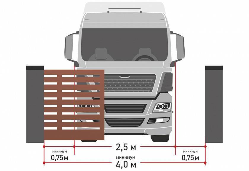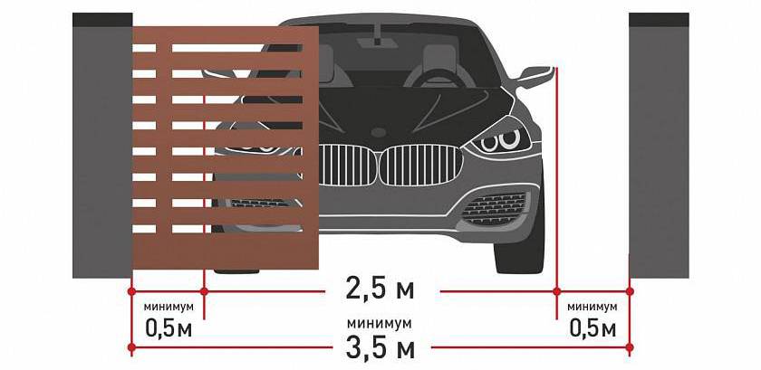 Чтобы автомобиль мог заезжать на участок и выезжать с него без риска быть случайно поцарапанным, нужно грамотно рассчитать необходимую ширину проема, которая зависит от габаритов машины. Так, для легкового автомобиля ширина проема должна составлять минимум 3,5 м, для грузового — более 4 м.