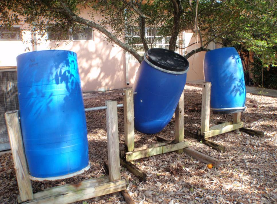 При изготовлении компостера для дачи или сада можно использовать бочки. Это могут быть бетонные кольца или деревянные изделия, которые закапываются в землю. Дно конструкции застилается дренажем, а сверху устанавливается крышка с отверстиями для обеспечения вентиляции.