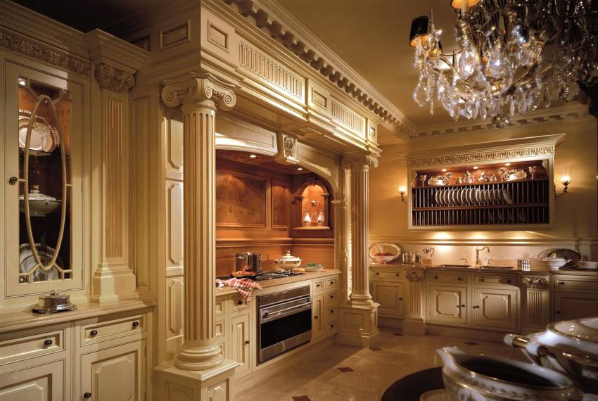 Благодаря тому, что неоклассический стиль имеет четкие требования, его довольно легко воплотить в реальность – самостоятельно выбрать отделочные материалы, заказать кухонную мебель.