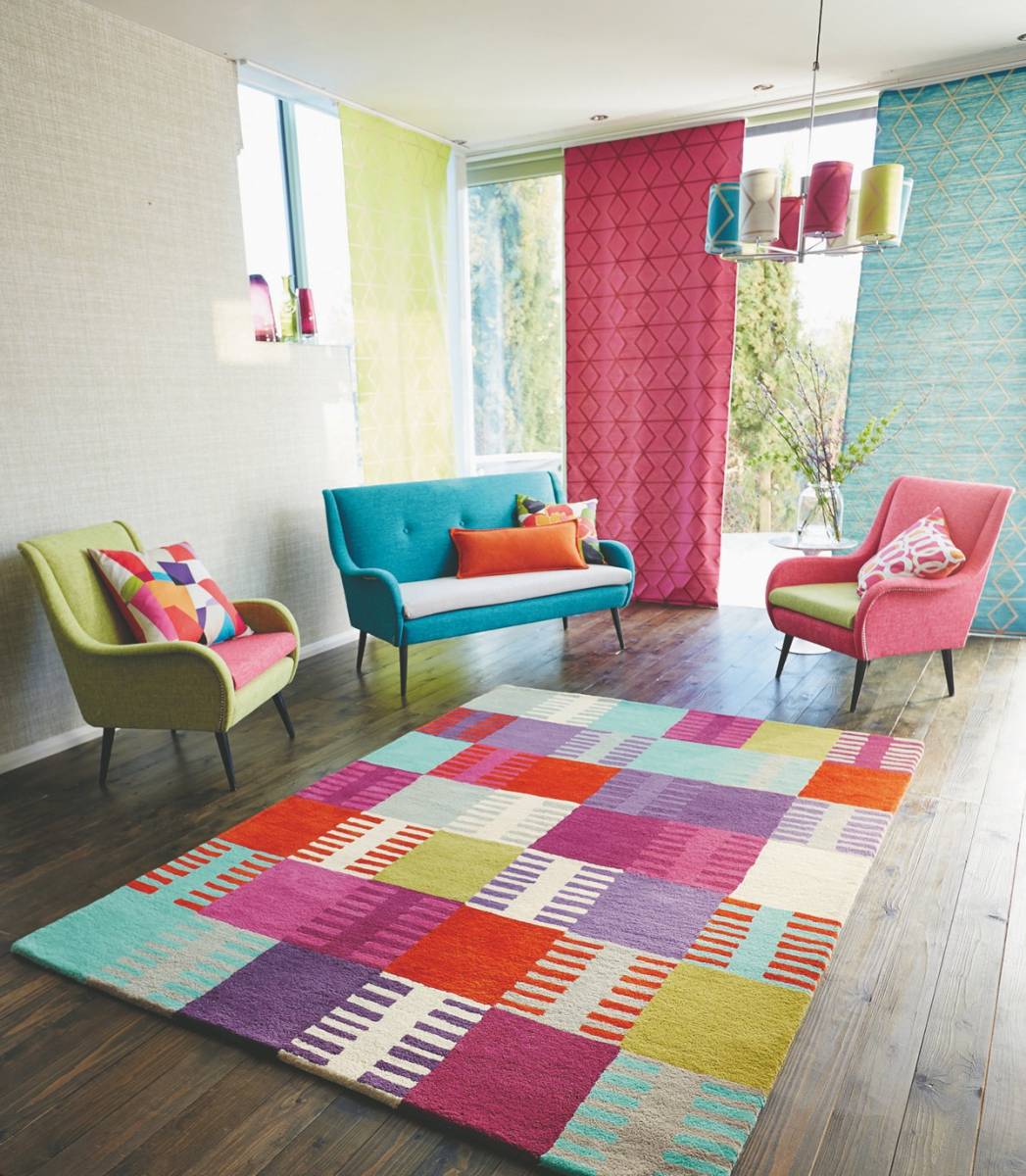 Он включает все цвета радуги, тем самым привлекая к себе внимание. Ковер идеально смотрится в ансамбле с мягкой мебелью, придавая этой зоне уюта и красоты