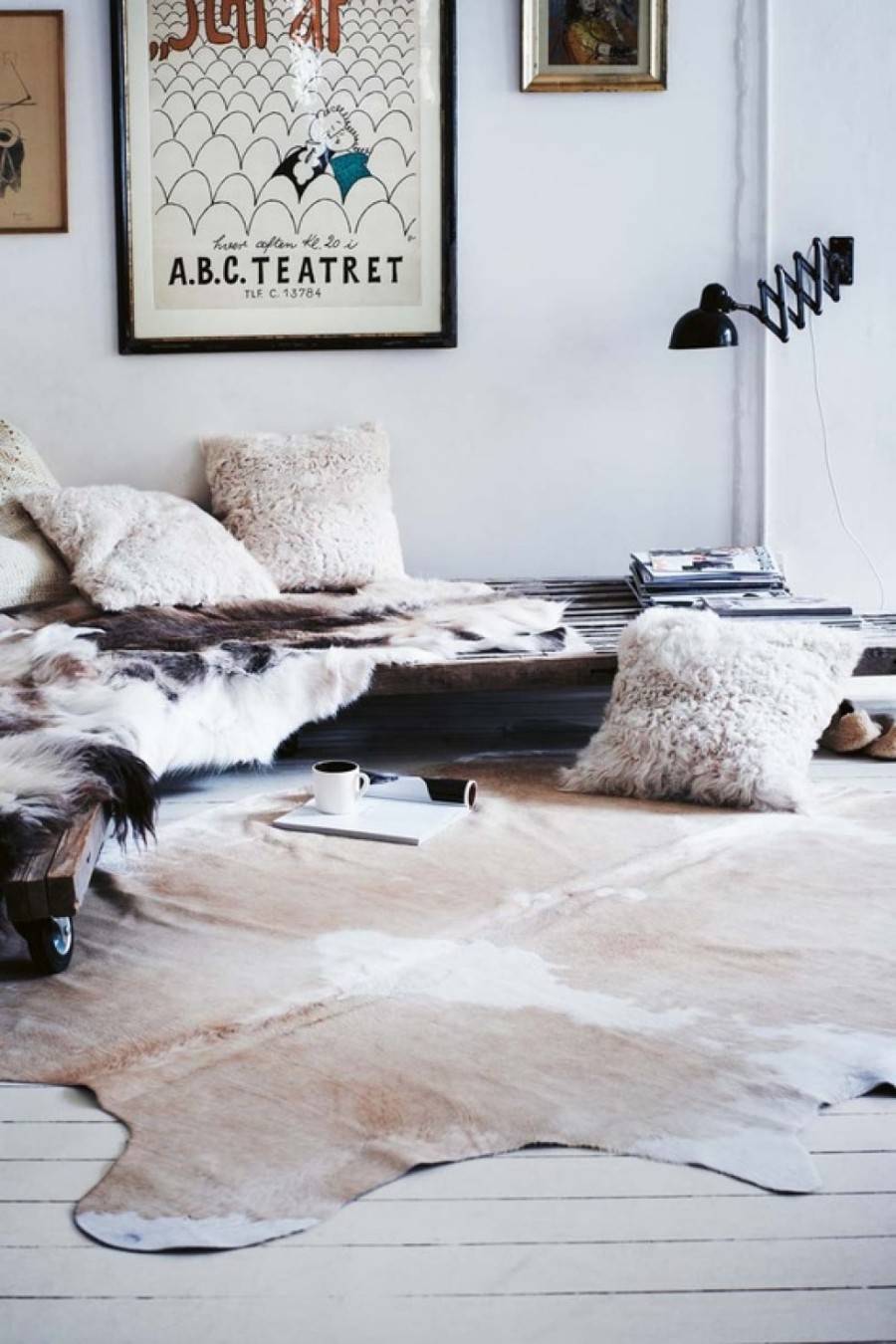 Ковер из шубы можно выполнить не только для пола. В интерьере большое количество способов, где он будет выглядеть хорошо и необычно.