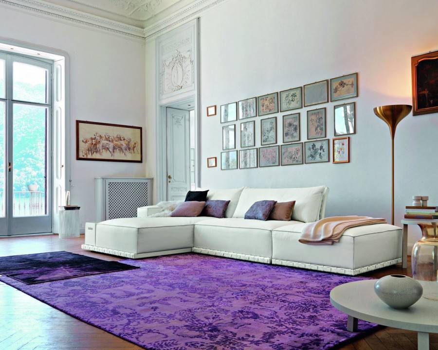 - Если пространство позволяет, постелите полотно на середину комнаты, так вы сделаете акцент на изделии и добавите интерьеру ощущение завершенности.