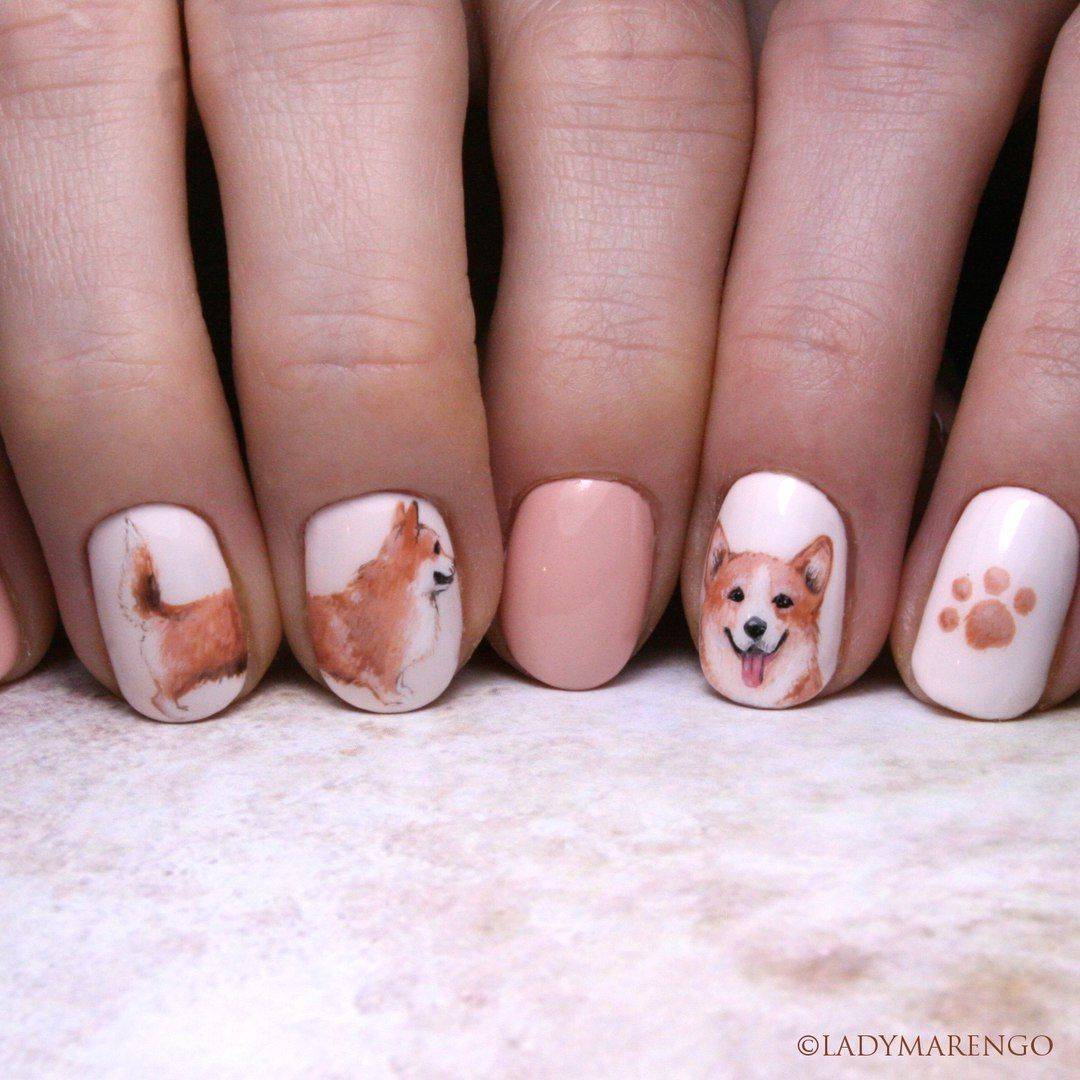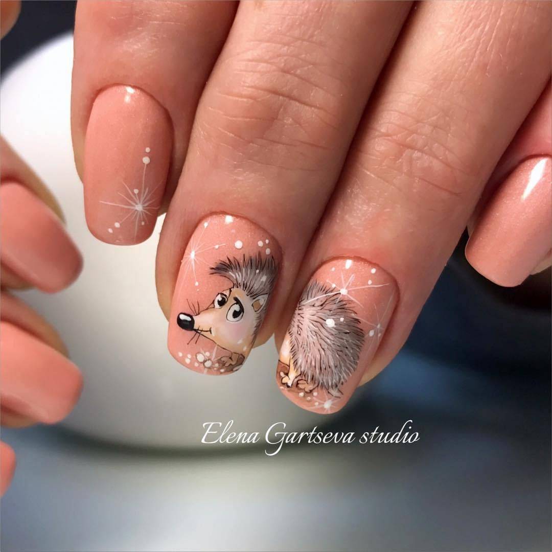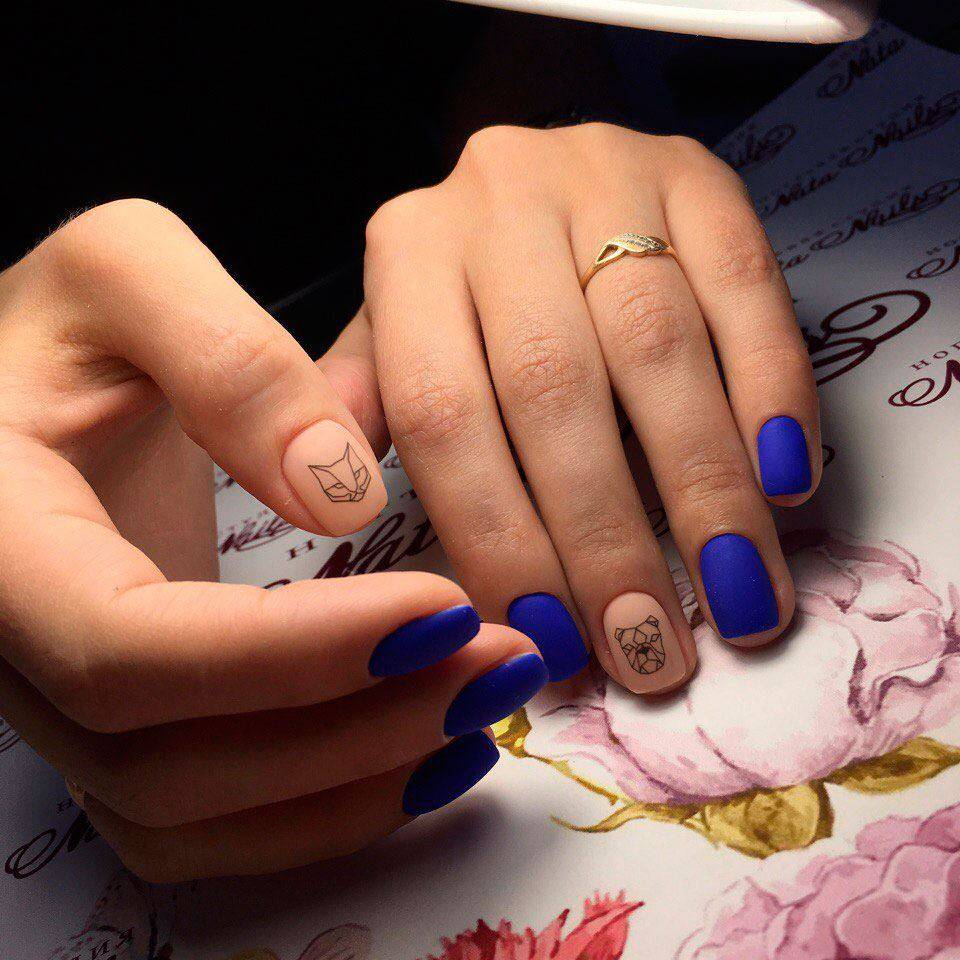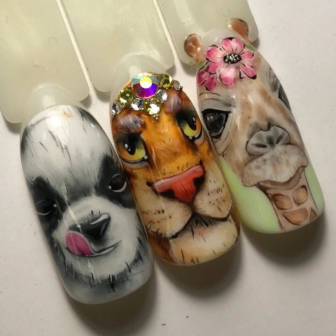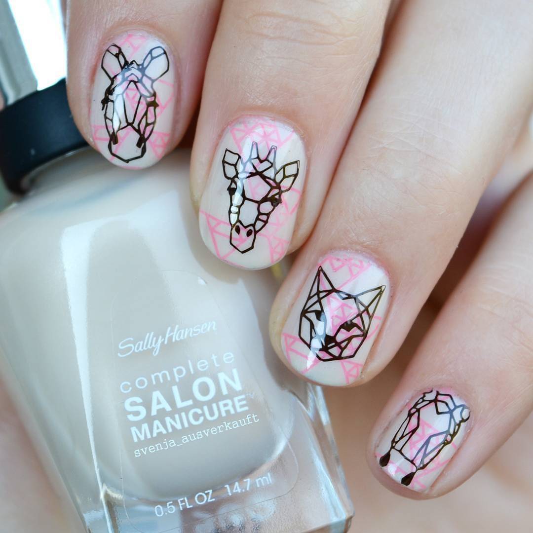 Маникюр с животными в геометрическом стиле
