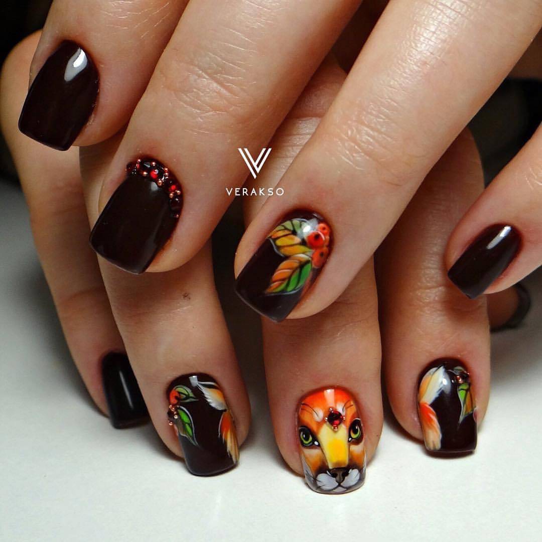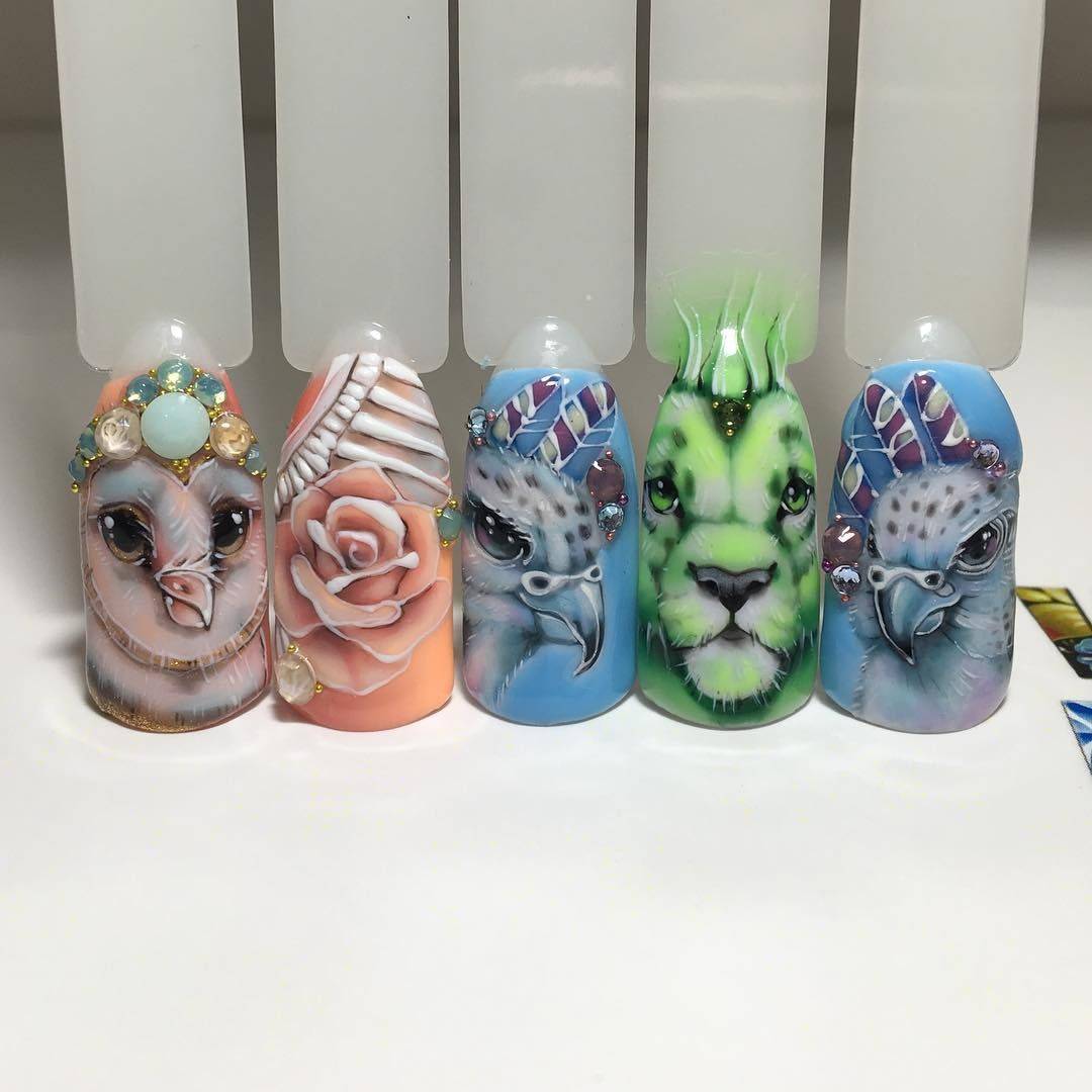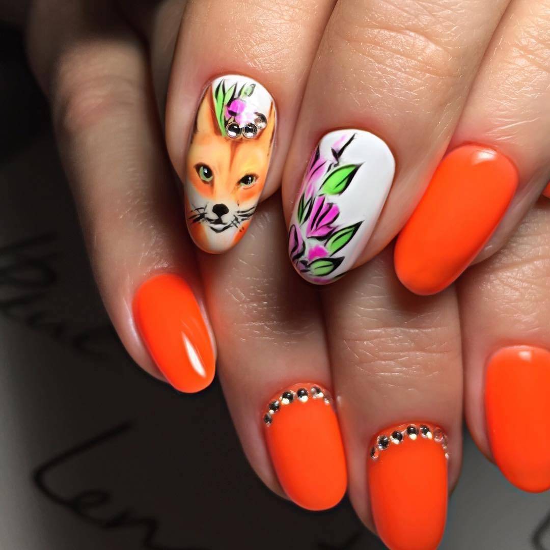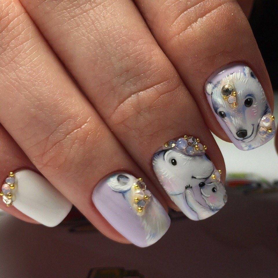 Маникюр с животными в геометрическом стиле
