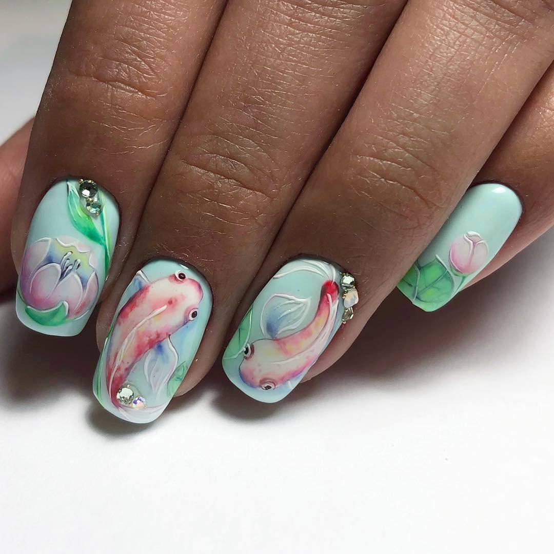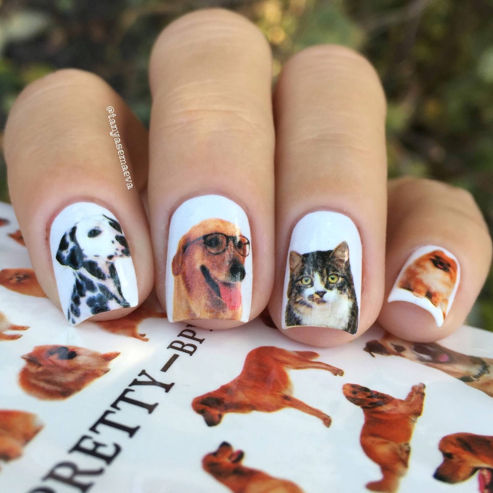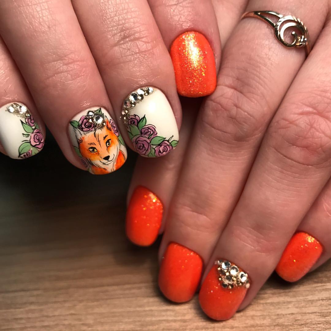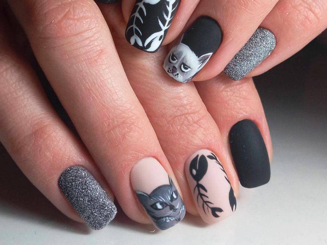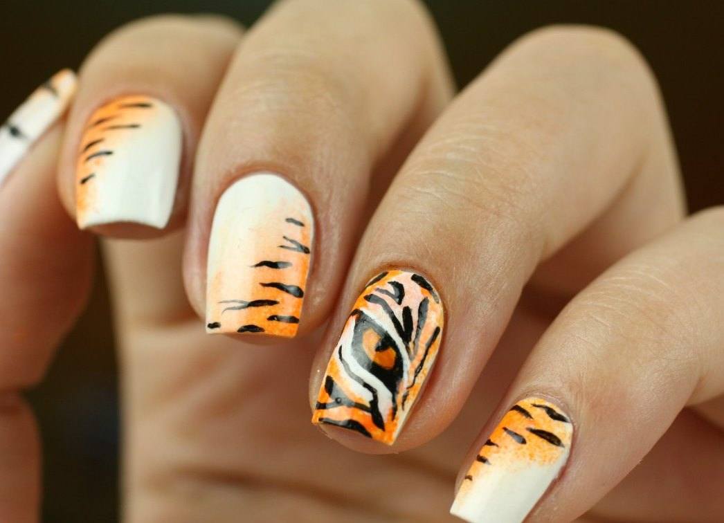 Маникюр с животными в геометрическом стиле
