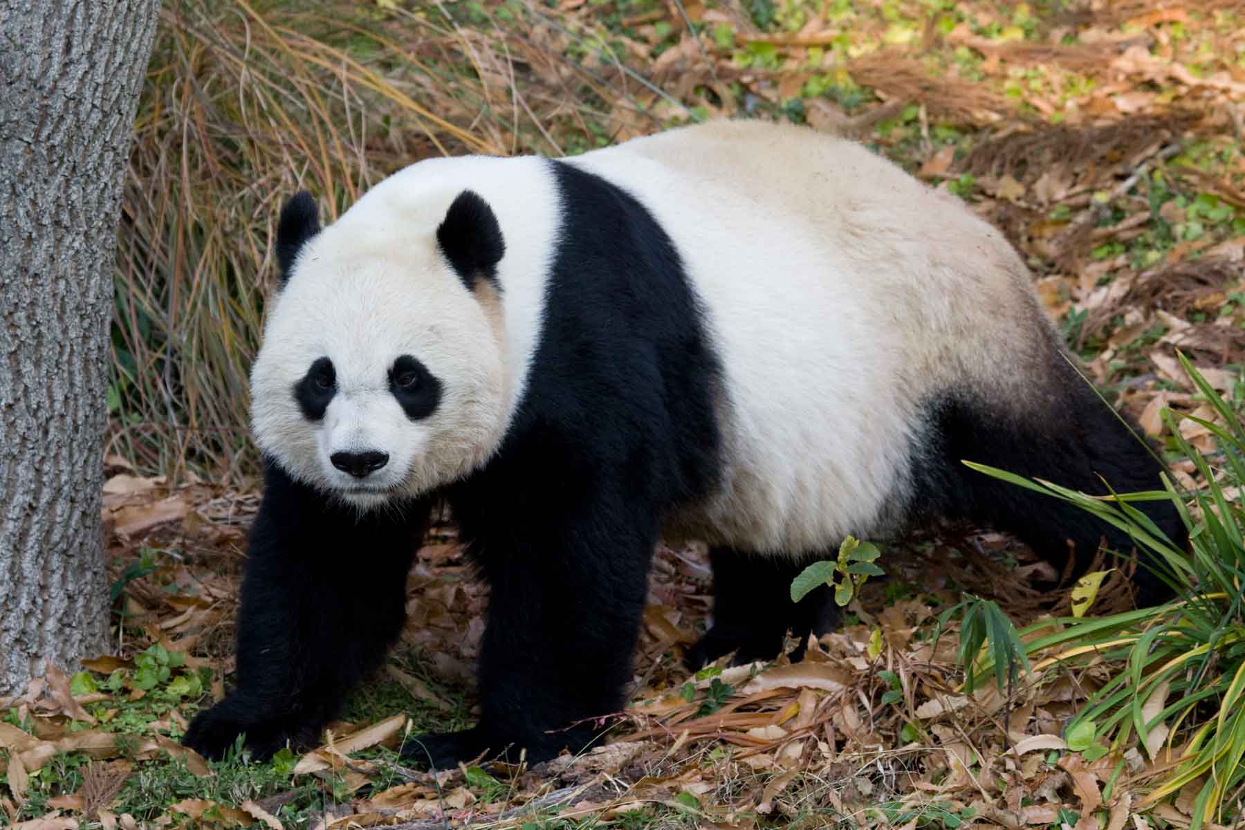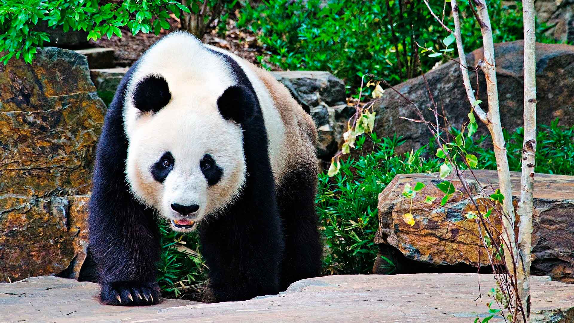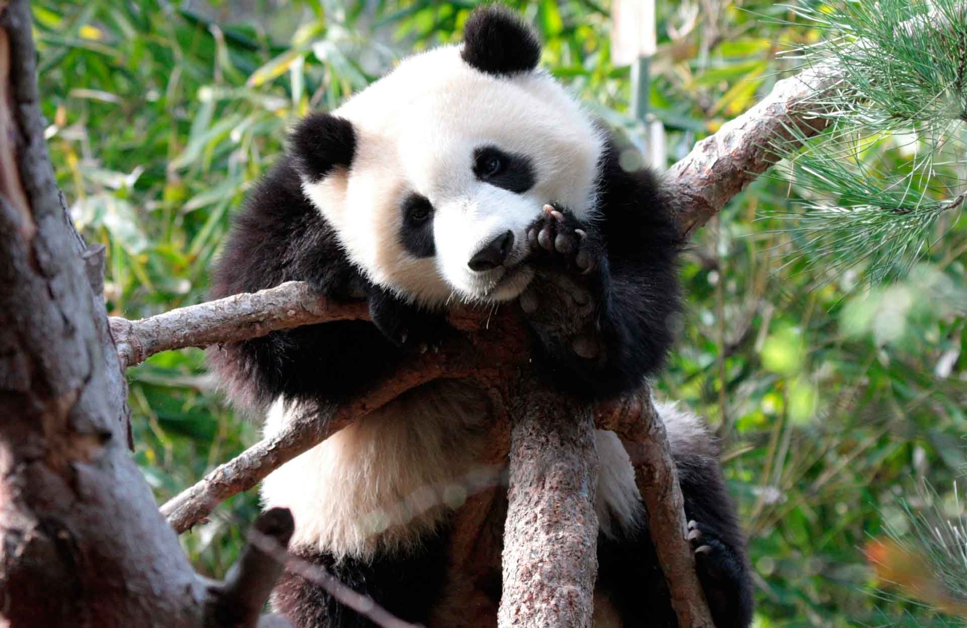 Пятнистый медведь панда имеет необычные передние лапы с шестью пальцами. Такое строение лап позволяет управляться с молодыми и тонкими побегами растений. На подошвах имеются подушечки, которые помогают удерживать гладкие стебли деревьев.