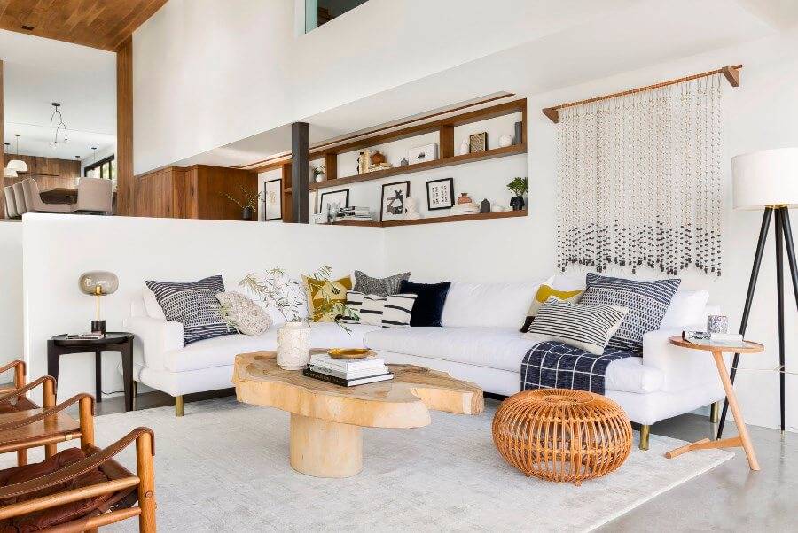 Оно может повторять форму зоны отдыха в совмещенном пространстве, контрастировать с основным оформлением или быть в одном тоне с ним, формировать цельную композицию с другими предметами — мягкой мебелью. Например, прямоугольный ковер в гостиную, уложенный рядом с угловым диваном, делает его форму правильной, органичной, завершенной, поэтому смотрится единым целым.
