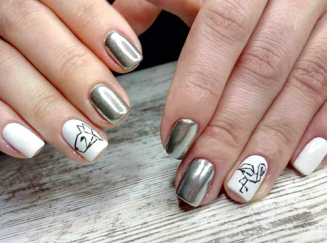 На сегодняшний день дизайн в стиле геометрии считается самым популярным и востребованным. Даже изображения животных модно в наше время рисовать в данном направлении. Геометрический стиль подразумевает под собой выполнение рисунка при помощи точек и линий. Для более упрощённого варианта нанесения орнамента мастера используют готовые слайдеры и стемпинги. Ну, а для любителей собственноручно выполнять орнамент, геометрический рисунок не составит сложностей. Геометрические животные довольно часто создаются в ахроматической цветовой гамме. При нанесении данного дизайна самое главное правильно подобрать нужные оттенки и аккуратно наносить линии рисунка, чтобы силуэт животного был заметен.
