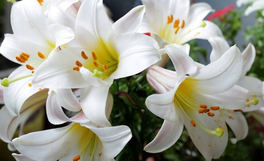 Лилия характеризуется красивыми белыми лепестками с уникальной формой и поэтому часто входит в состав букета невесты, где играет роль королевы. Белые лилии символизируют чистоту и невинность.
