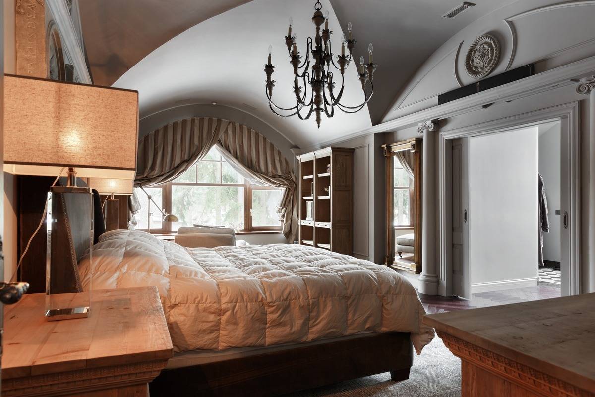 Спальня в частном доме фото в историческом стиле. Такой стиль в основном выбирают состоятельные люди. К этой категории относиться стиль барокко, викторианский или ампир. Это стили роскоши, богатства и изобилия. Изначально может показаться, что эти стили не подходят для спальни, но если выдержать все правильно, получается эффектное помещение;