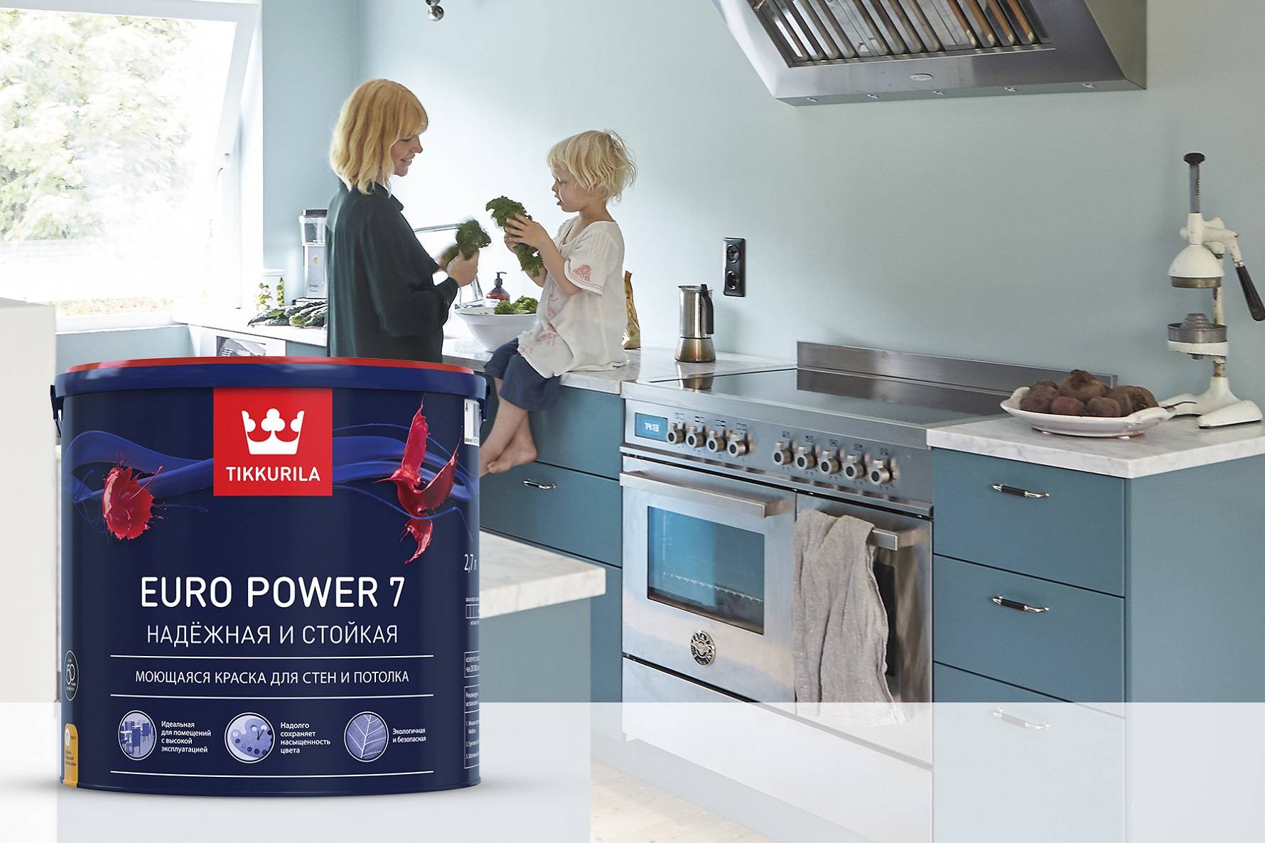 Среди универсальных материалов выделяется краска Tikkurila euro 7. Это водоэмульсионная краска, в состав которой дополнительно входит латекс и частички акрила. Использовать ее можно для любых поверхностей, но только в сухих условиях.
