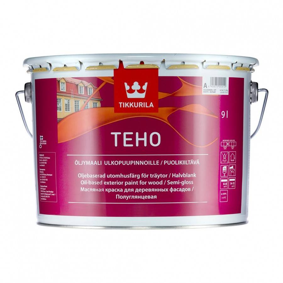 Краски по дереву Тиккурила для наружных работ по дереву представлены несколькими наименованиями. Серия Teho – это классические представители алкидно-масляных соединений, в которые добавлены растворители на органике. Полный цикл сушки занимает около суток. В течение часа высыхает краска Pika-Teho.