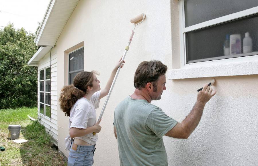 - Краска для осуществления работ по выполнению отделочных работ фасадов должна иметь устойчивость цвета, то есть не выцветать под действием лучей солнца.