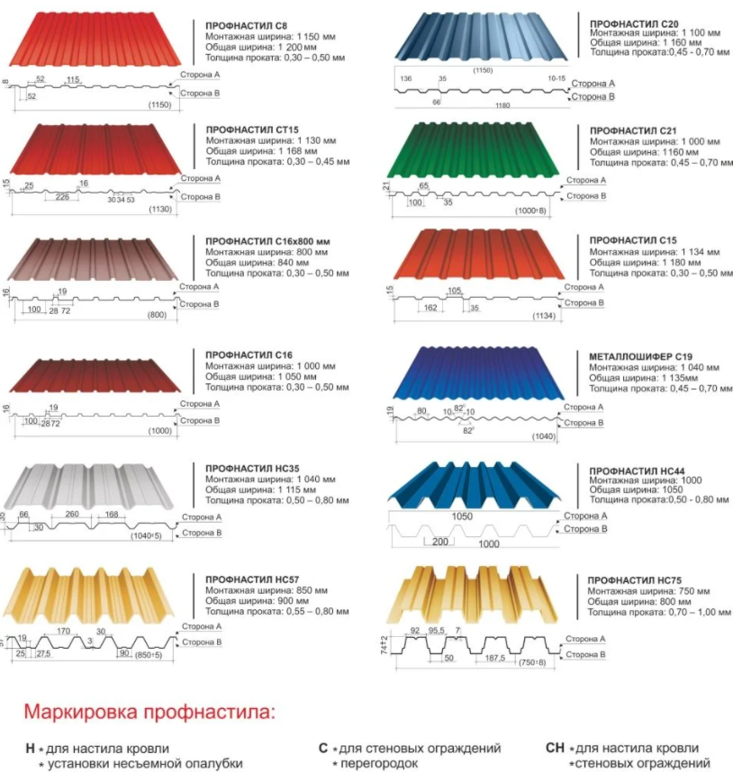 Маркировка и размеры профлиста