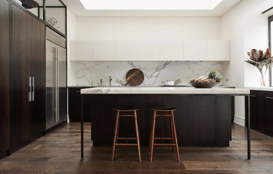 Хороший способ для того, чтобы сделать комнату респектабельной, заключается в использовании шоколадных оттенков для кухонных фасадов