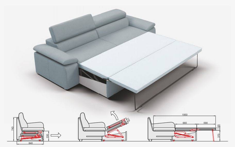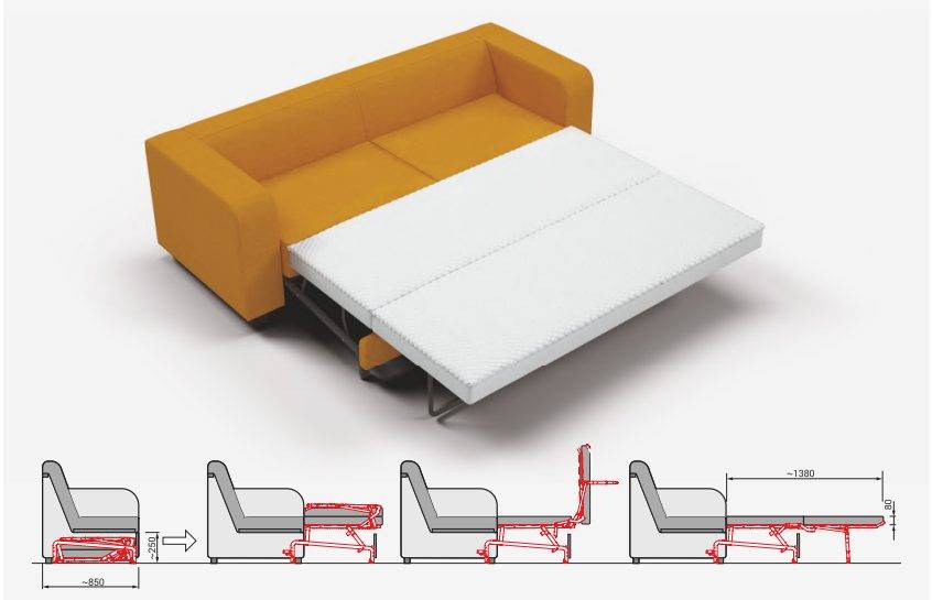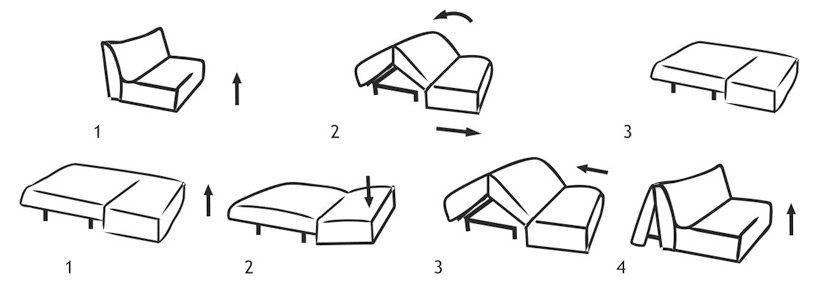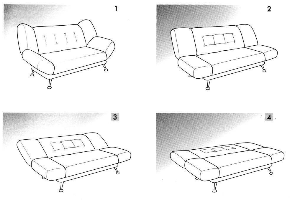 У диванов есть много видов механизмов, все они представляют вариации нескольких основных решений.