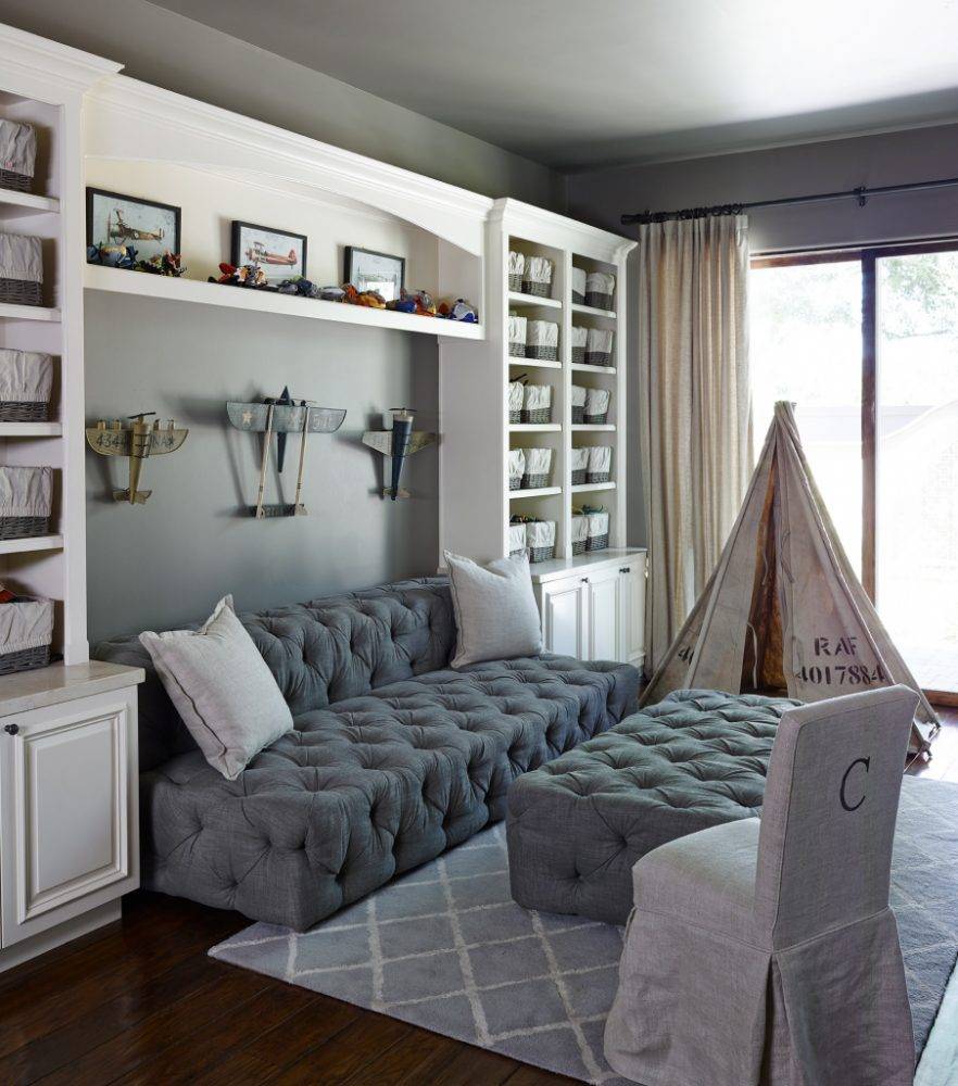 Обычно подобные диваны выбирают в дома, оформленные в современном стиле. Такие конструкции дополнены топпером (тонким ортопедическим матрасом), что позволяет ребенку отдыхать с комфортом.